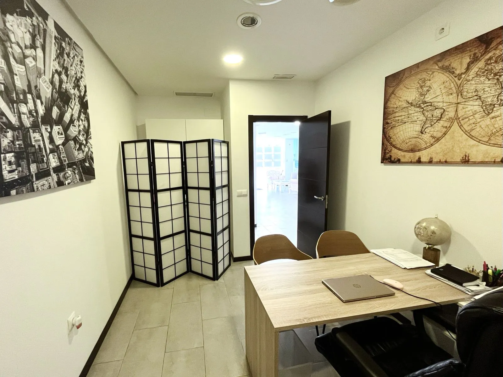 - Lower floor with meeting room and storage area